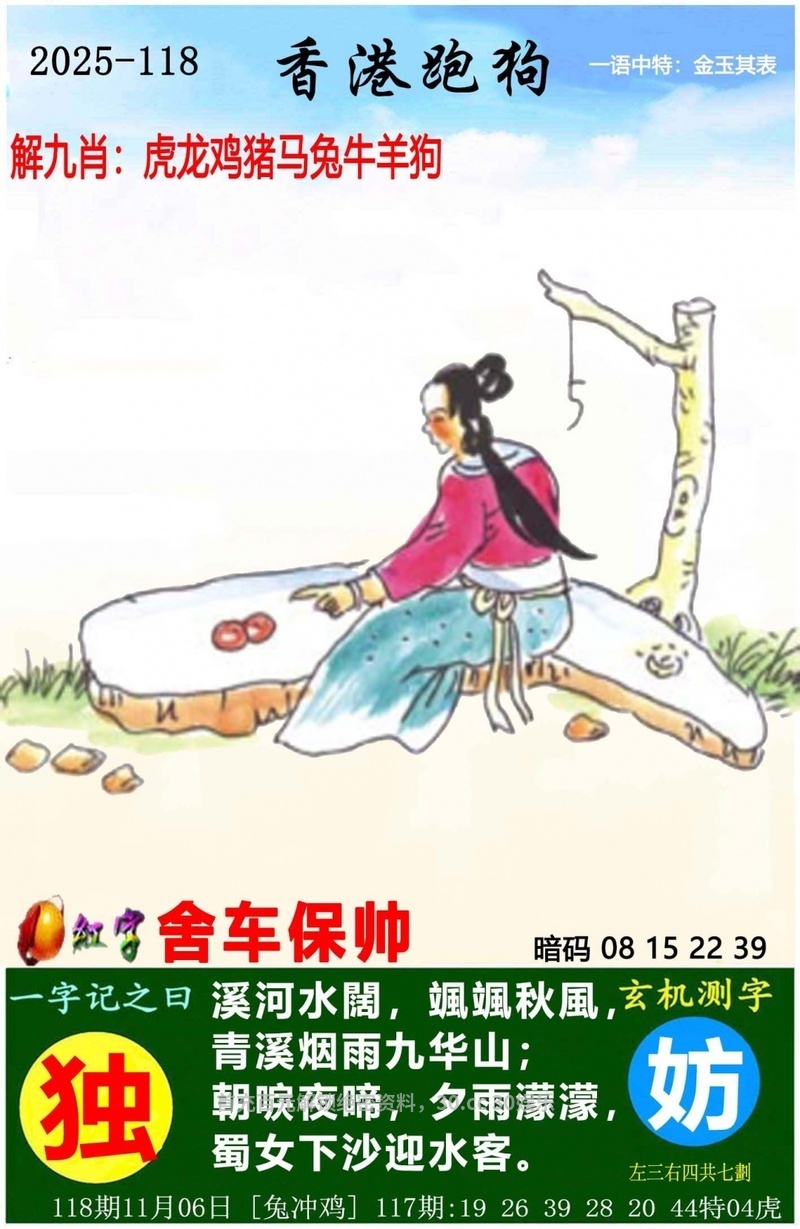 | 120期:七肖中特[马兔牛虎鼠猪鸡]开:牛41准 |